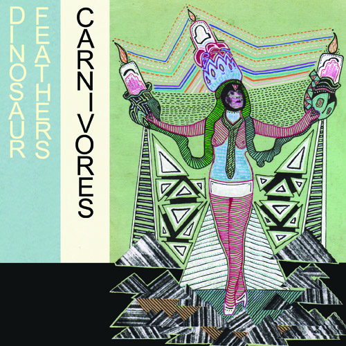 London based blog Music Mule is taking the step from virtual to physical with the release of its debut record, a 300-limited-edition pressing of a quadruple A-side split 7″ from Brooklyn’s Dinosaur Feathers and Atlanta, Georgia’s Carnivores.